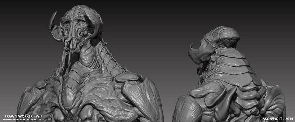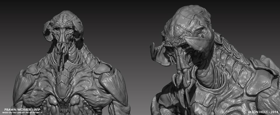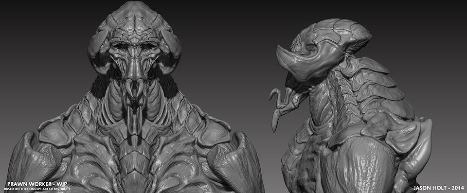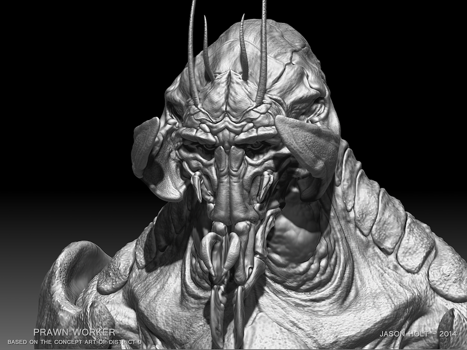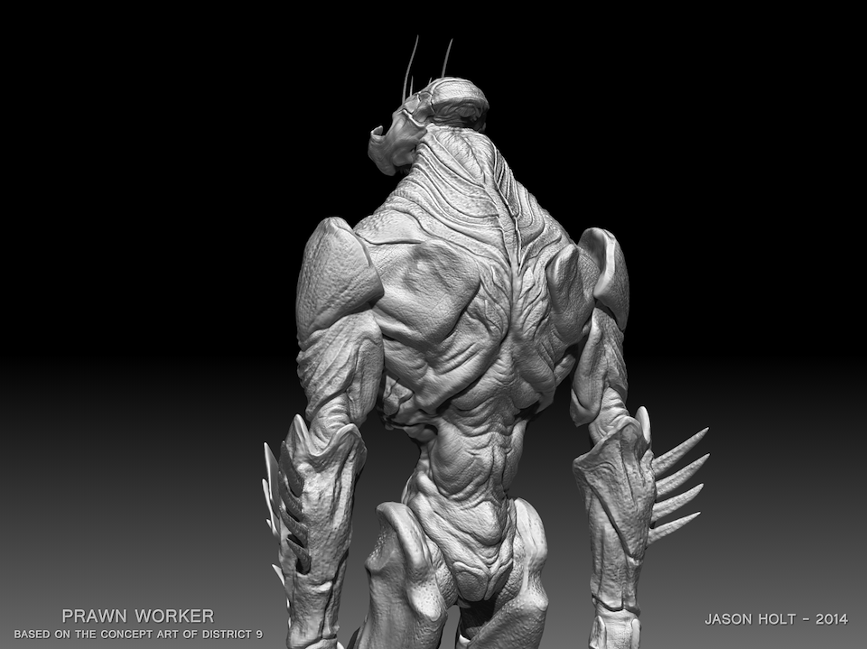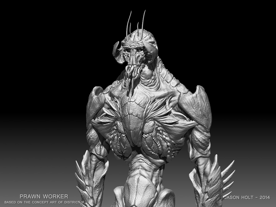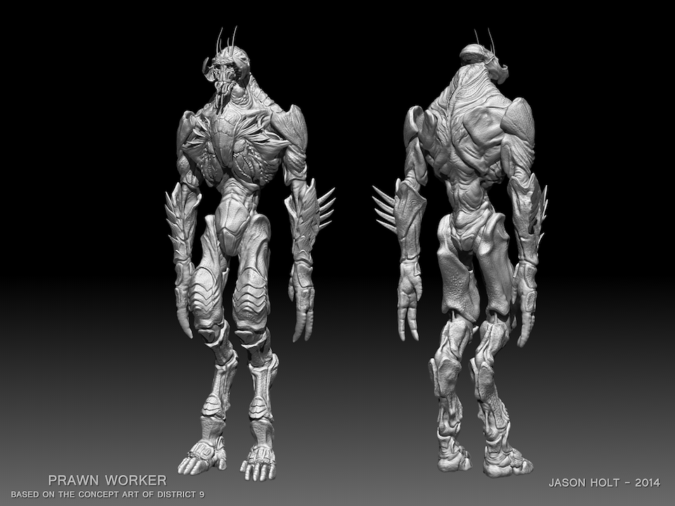 In the District 9 Art book, there were unused concept designs for a Prawn Worker that I absolutely fell in love with. This is my personal rendition based upon those designs.