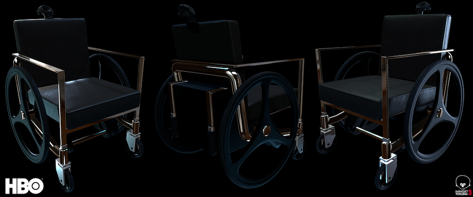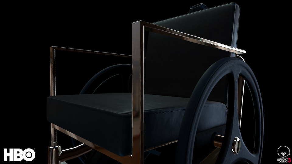 The Westworld VR wheelchair. I was responsible for modeling and designing the chair from direction by Colin Foran and Steve Scott. Tanner Ellison and myself collaborated in the texturing and material process.