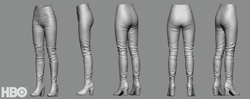 Imogen High Poly Boots and Pants Sculpt. The base Marvelous Designer output mesh was created by Claire Hummel.