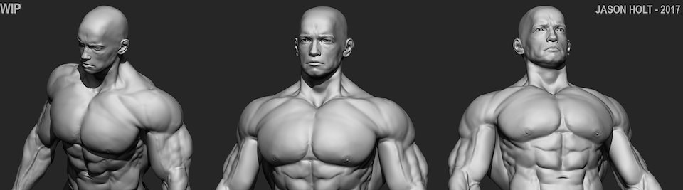 I created a Photogrammetry 3d Scan of an Arnold Schwarzenegger lifecast from the movie “Predator” to act as a reference for this project using Agisoft Photoscan. Though my initial sculpt of Arnold is based around his earlier body building days during the 70's, I plan to create multiple body sculpts of him throughout his career to demonstrate a progression of age from the 70's to present day.